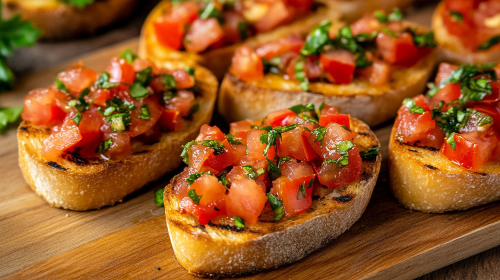 As bruschettas são ótimas opções de petiscos vegetarianos para bar, pois unem praticidade, sofisticação e ingredientes acessíveis. No caso da versão com molho pesto, o preparo começa com fatias de pão baguete italiano, levemente tostadas com azeite de oliva.